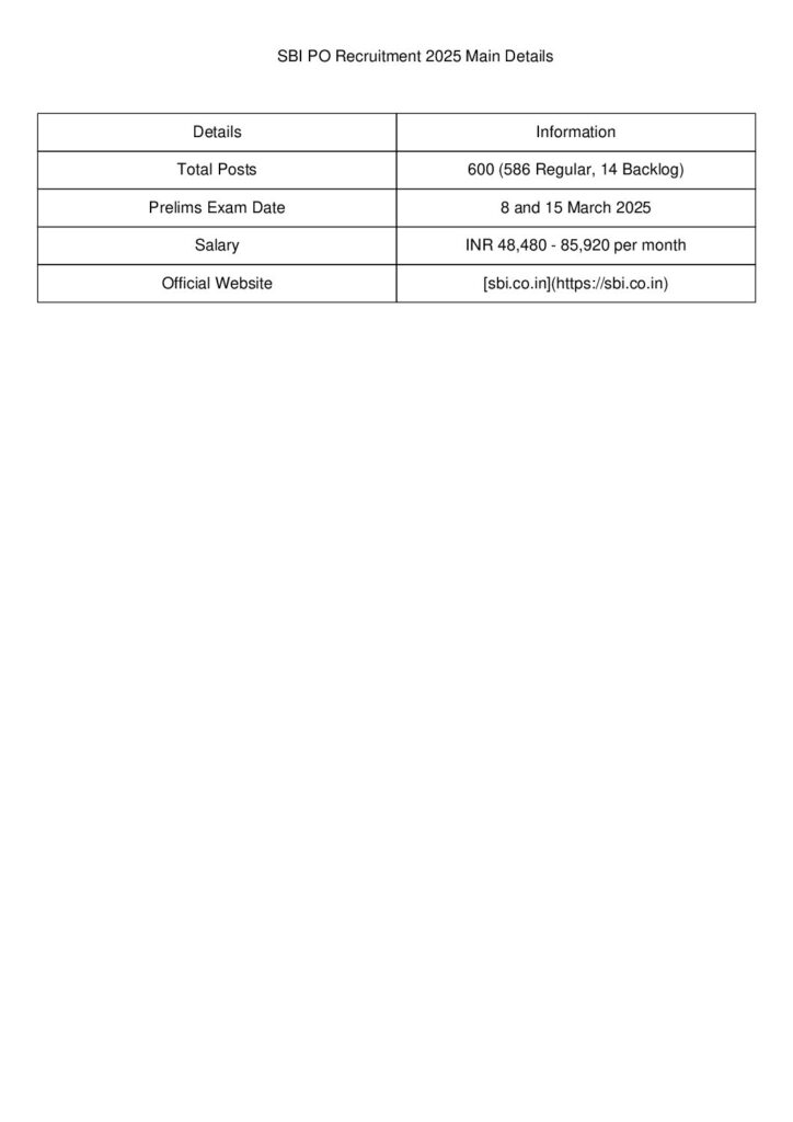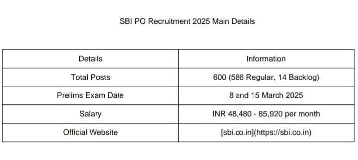 अगर आप ग्रेजुएट हैं और सरकारी बैंक में नौकरी की तलाश कर रहे हैं, तो आपके लिए बड़ी खबर है। भारतीय स्टेट बैंक (SBI) ने प्रोबेशनरी ऑफिसर (PO) पदों पर भर्ती के लिए SBI PO Recruitment 2025 Notification जारी कर दिया है। इस भर्ती के तहत कुल 600 पदों को भरा जाएगा। आइए जानते हैं भर्ती की पूरी जानकारी, पात्रता, चयन प्रक्रिया और आवेदन की प्रक्रिया।